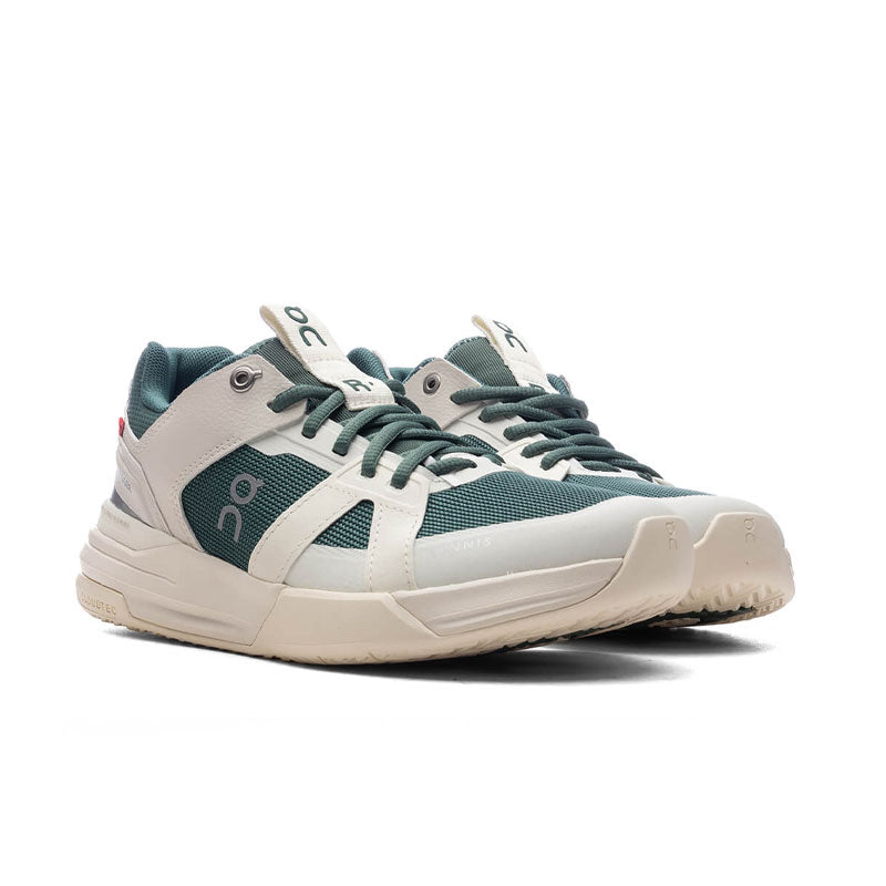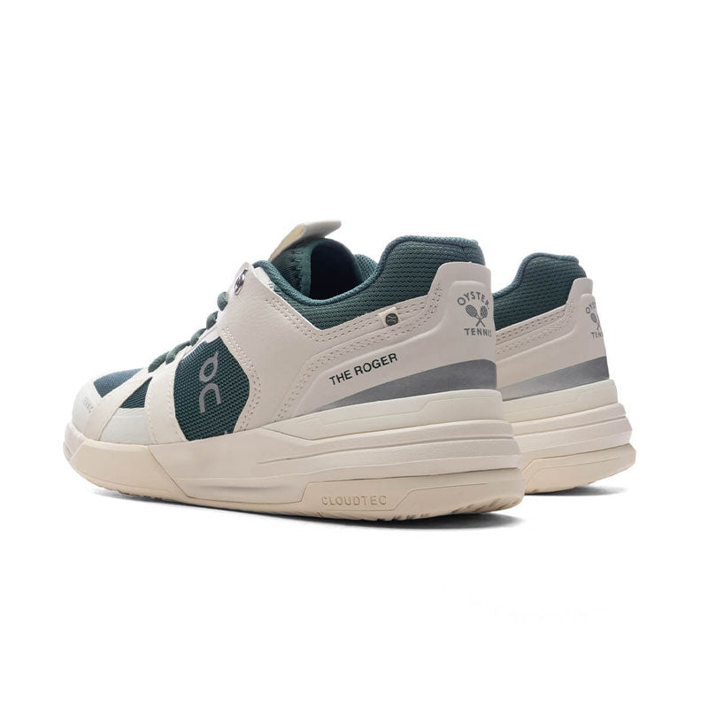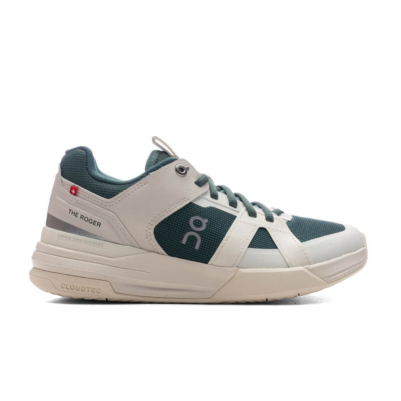 The Roger Clubhouse Pro 1 in Ivory/Evergreen features hidden CloudTec® for a soft yet stable feel, these sneakers provide enhanced comfort and support. Integrated overlays lock in the forefoot, while the 3/4 length Speedboard® improves fit and stability. The synthetic leather upper combines durability with a sleek look, complemented by super-soft landings thanks to Helion™ superfoam. A herringbone pattern ensures advanced traction, and ergonomically-placed medial reinforcement aids in sliding. This pair seamlessly marries performance with style.